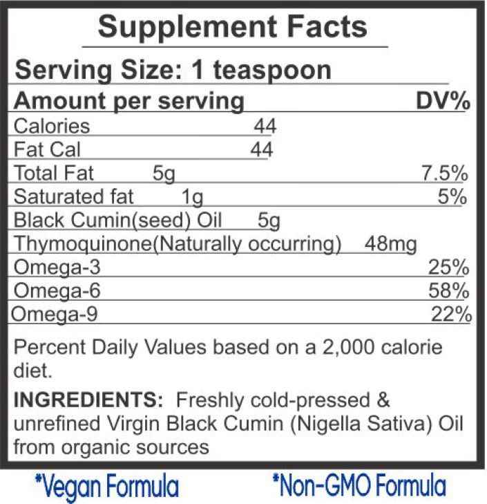 Regalabs Organic Black Cumin Seed Oil is 100% Pure. Our natural black seed oil is loaded with multiple Omega fatty acids that may enhance your overall health, playing an essential role in promoting better brain health and improving memory.